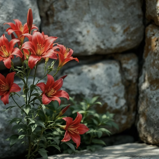 혹시 지금 누군가가 사무치게 그립다면 이 꽃을 가만히 들여다보세요. 서로를 위해 자신의 가장 아름다운 순간을 포기하고 비켜서는 꽃과 잎의 배려심을 느낄 수 있을 것입니다. 진정한 사랑은 소유하는 것이 아니라, 서로의 존재를 위해 묵묵히 기다려주는 것임을 이 붉은 꽃송이가 조용히 가르쳐주고 있습니다.