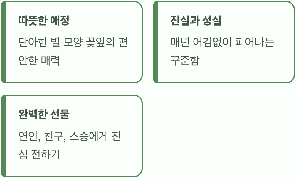 또한, ‘진실’과 ‘성실’이라는 꽃말도 가지고 있는데, 이는 매년 여름이면 어김없이 같은 자리에서 꽃을 피워내는 그 꾸준함과 믿음직스러운 모습에서 비롯되었습니다. 그래서 도라지꽃은 변치 않는 마음을 약속하는 연인뿐만 아니라, 오랫동안 곁을 지켜준 소중한 친구나 존경하는 스승에게 진심을 전하는 선물로도 더할 나위 없이 좋습니다. 이처럼 이 꽃의 존재는 우리에게 진실된 관계의 소중함을 일깨워 주는 해결책이 됩니다.