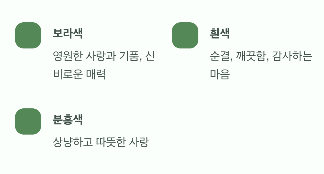 도라지꽃은 주로 청초한 보라색과 순백의 흰색으로 우리에게 잘 알려져 있습니다. 신비로운 ‘보라색 도라지꽃’은 앞서 이야기한 ‘영원한 사랑’과 ‘기품’을 가장 잘 상징합니다. 깊이를 알 수 없는 밤하늘처럼, 그윽하고 신비로운 매력을 가지고 있죠.