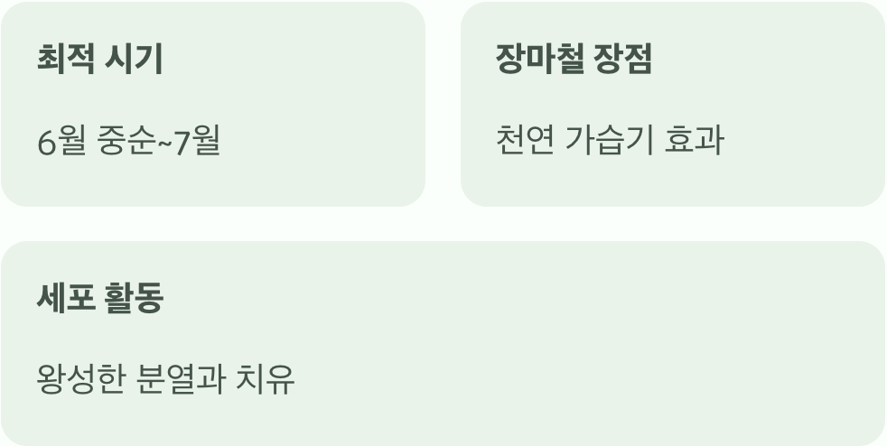 식물 번식에서 가장 중요한 것은 화려한 기술이 아니라 적절한 타이밍을 맞추는 것입니다. 때죽나무는 봄에 싹이 트기 전이나 가을에도 시도할 수 있지만, 성공 확률이 가장 높은 시기는 바로 6월 중순에서 7월 사이입니다. 이때는 나무가 가장 왕성하게 자라는 시기라서 세포 분열이 활발하고 상처가 나도 금방 아물며 뿌리를 내리는 힘이 강력합니다.