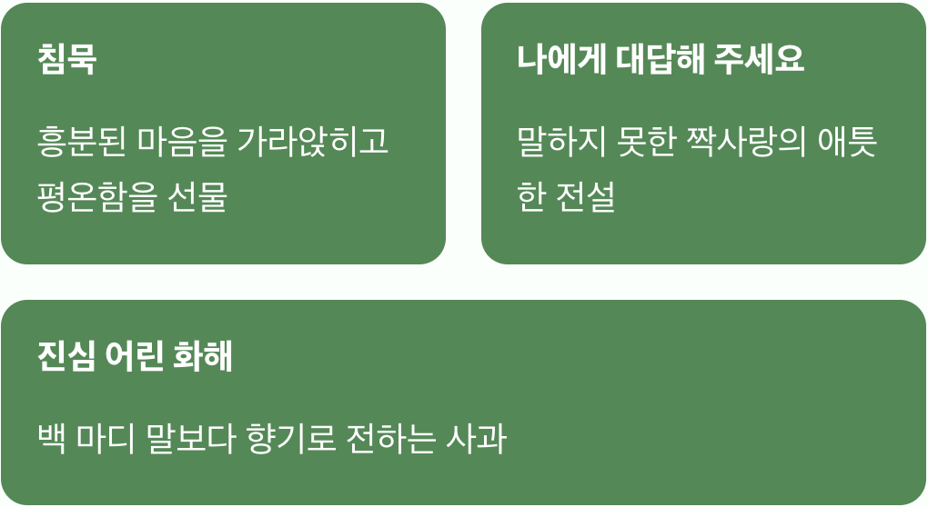 혹시 친구나 가족과 다투고 나서 어색한 분위기가 흐르고 있나요? 그렇다면 백 마디 말보다 이 화분 하나를 슬며시 건네보세요. 흥분된 감정을 차분하게 식혀주고, 말로는 다 전하지 못한 진심 어린 사과의 마음을 향기에 실어 보낼 수 있는 가장 우아한 해결책이 될 것입니다.