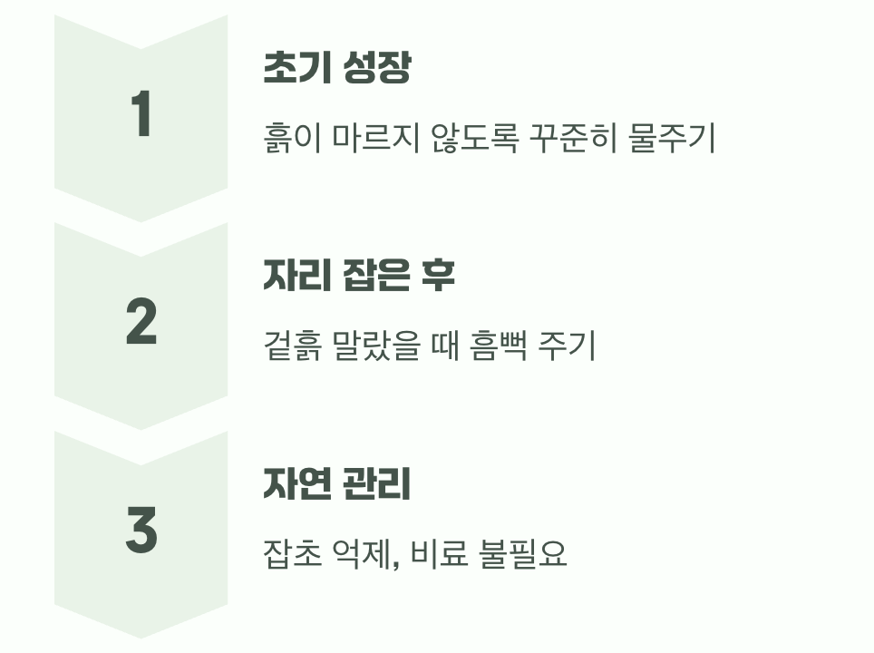 메밀은 성장 속도가 매우 빨라 키우는 재미가 쏠쏠한 식물입니다. 씨앗을 뿌린 후 싹이 트고 자라는 초기에는 흙이 마르지 않도록 꾸준히 물을 주어 성장을 도와야 합니다. 하지만 일단 어느 정도 자리를 잡고 나면, 겉흙이 말랐을 때 한 번씩 흠뻑 주는 정도로 관리해도 충분합니다.