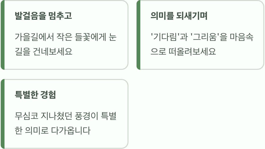 이제부터 가을길을 걸을 때, 잠시 발걸음을 멈추고 이 작은 들꽃에게 눈길을 한번 건네보는 것은 어떨까요? ‘기다림’과 ‘그리움’의 의미를 되새기며, 잊고 지냈던 소중한 사람들을 마음속으로 떠올려보는 시간을 가져보세요. 무심코 지나쳤던 풍경이 당신에게 아주 특별한 의미로 다가오는 놀라운 경험을 하게 될 것입니다.