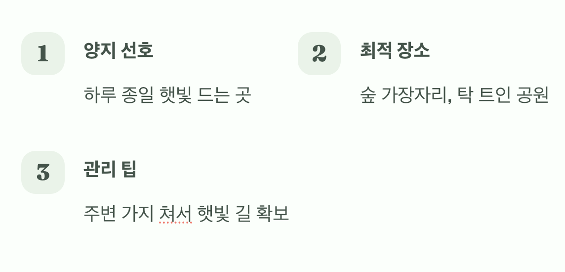 따라서 꽃구경을 가고 싶다면 숲속 깊고 어두운 곳보다는 햇살이 잘 들어오는 숲의 가장자리나 탁 트인 공원을 찾는 것이 정답입니다. 햇빛을 충분히 받아야 에너지를 모아 꽃눈을 틔울 수 있기 때문입니다. 나무 주변을 가리는 다른 큰 나무가 있다면 가지를 쳐주어 햇빛 길을 열어주는 것이 꽃을 보기 위한 필수 조건입니다.