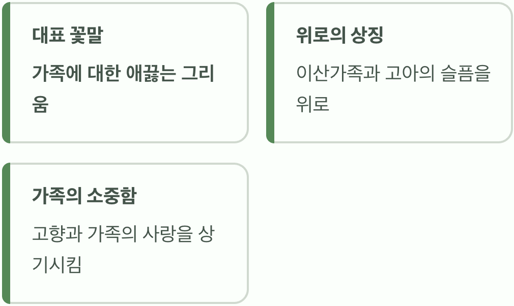 이 슬프고도 애틋한 이야기 때문에, 찔레꽃의 가장 대표적인 꽃말은 바로 ‘가족에 대한 그리움’입니다. 이는 단순히 보고 싶다는 마음을 넘어, 다시는 만날 수 없을지도 모르는 혈육에 대한 애끓는 마음, 즉 한(恨)의 정서와 맞닿아 있습니다.