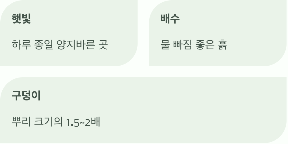 또한 물 빠짐이 좋은 흙을 준비해야 합니다. 진흙이 많은 땅이라면 모래나 마사토, 배양토를 섞어 흙을 부드럽게 만들어주는 것이 좋습니다. 구덩이는 뿌리 크기의 1.5배에서 2배 정도 넉넉하게 파고, 심은 후에는 흙을 꾹꾹 눌러 뿌리와 흙 사이에 빈 공간이 없도록 해주는 것이 중요합니다. 이 작은 정성이 나무의 성장을 돕는 튼튼한 기반이 됩니다.
