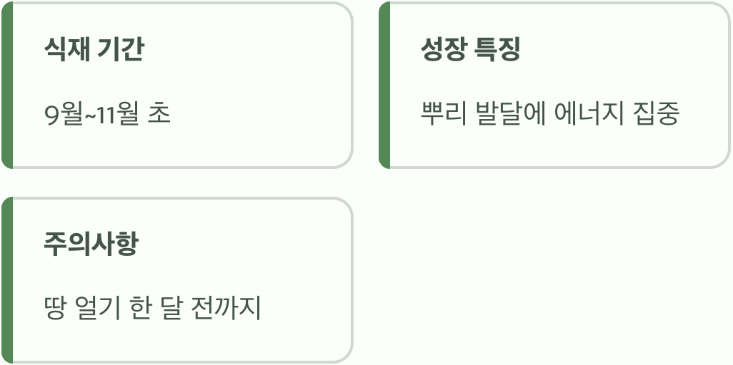 혹시 봄을 놓치셨더라도 실망할 필요는 없습니다. 9월에서 10월, 늦어도 11월 초까지의 가을 또한 아주 훌륭한 식재 시기입니다. 여름의 뜨거운 열기가 식고 흙의 온도가 적당히 유지되는 이 시기는, 나무가 잎을 키우는 것보다 땅속 뿌리를 뻗는 데 에너지를 집중하는 때입니다.