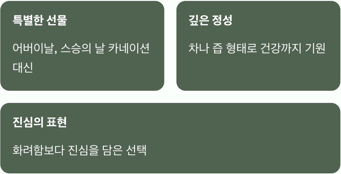 어버이날이나 스승의 날, 늘 카네이션만 선물하셨나요? 이번에는 조금 특별하게 흰민들레를 준비해 보는 것은 어떨까요? ‘감사하는 마음’이라는 꽃말과 함께 건강에 좋은 차나 즙 형태로 선물한다면, 뻔하지 않으면서도 깊은 정성을 전할 수 있는 아주 센스 있는 방법이 될 것입니다.