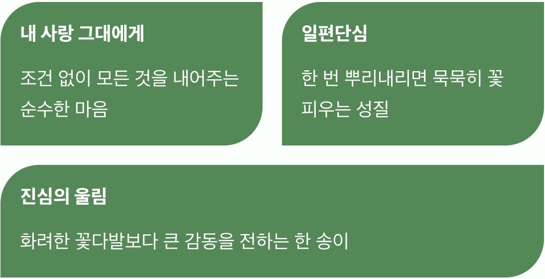 화려한 장미의 정열적인 사랑과는 결이 다릅니다. 조건 없이 모든 것을 내어주는 부모님의 사랑이나, 변치 않고 한 사람만을 바라보는 지고지순한 사랑을 표현할 때 이보다 더 완벽한 꽃은 없을 것입니다. 누군가에게 진심 어린 마음을 전하고 싶다면, 화려한 꽃다발보다 이 소박한 흰 꽃 한 송이가 더 큰 울림을 줄 수 있는 해결책이 될 것입니다.